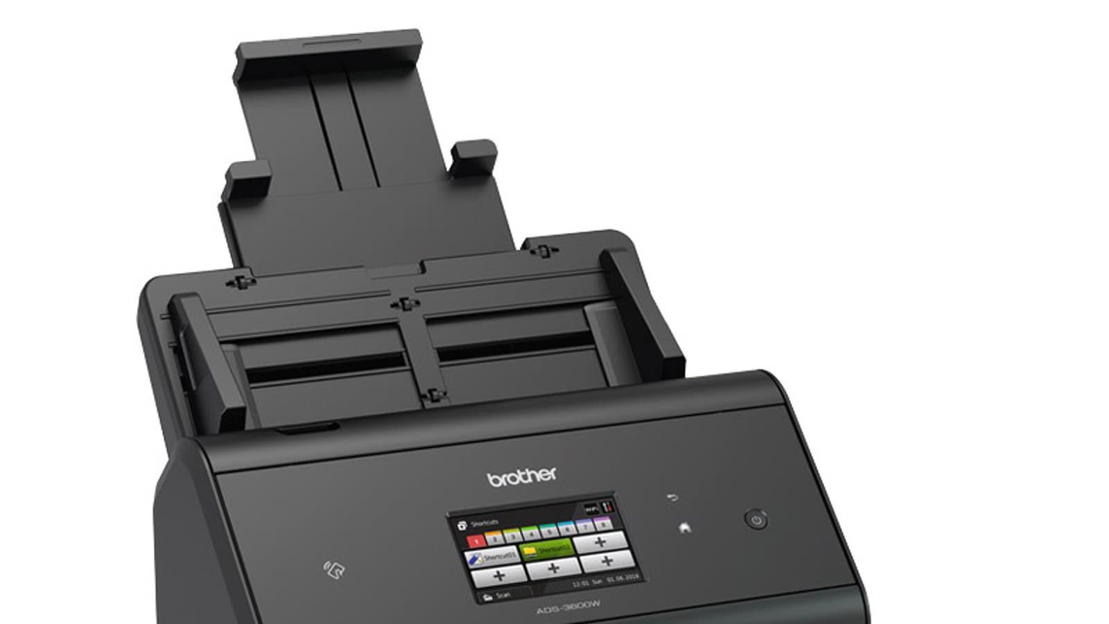 У ADS-3600W есть цветной сенсорный ЖК-экран с диагональю 9,3 см и четыре кнопки. Поэтому очень многие настройки можно осуществлять непосредственно с панели управления сканера, в том числе оперативно, не отходя от сканера.