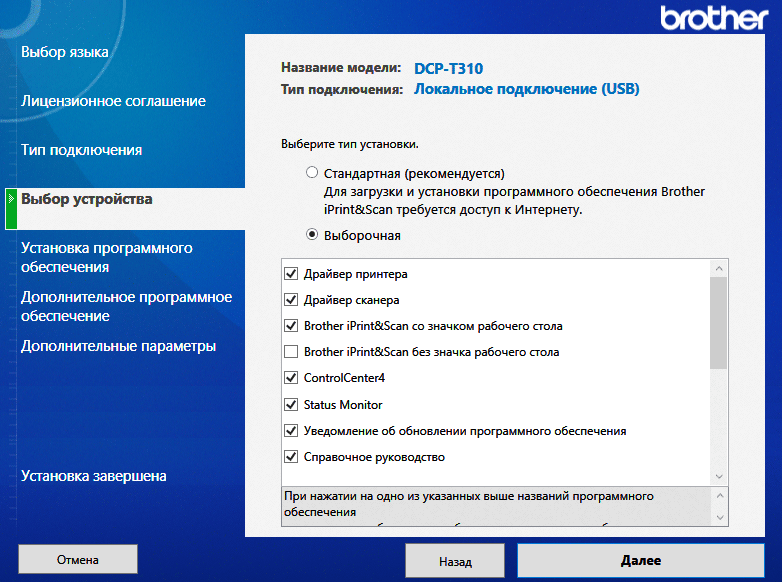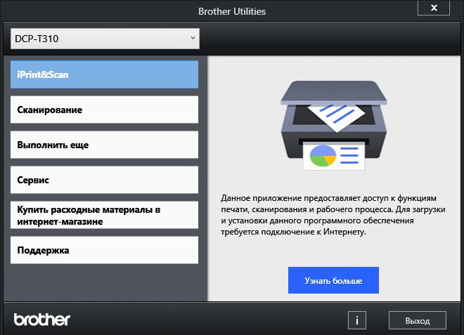 Мы рассмотрим младшую модель Brother DCP-T310 InkBenefit Plus.