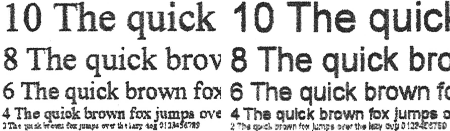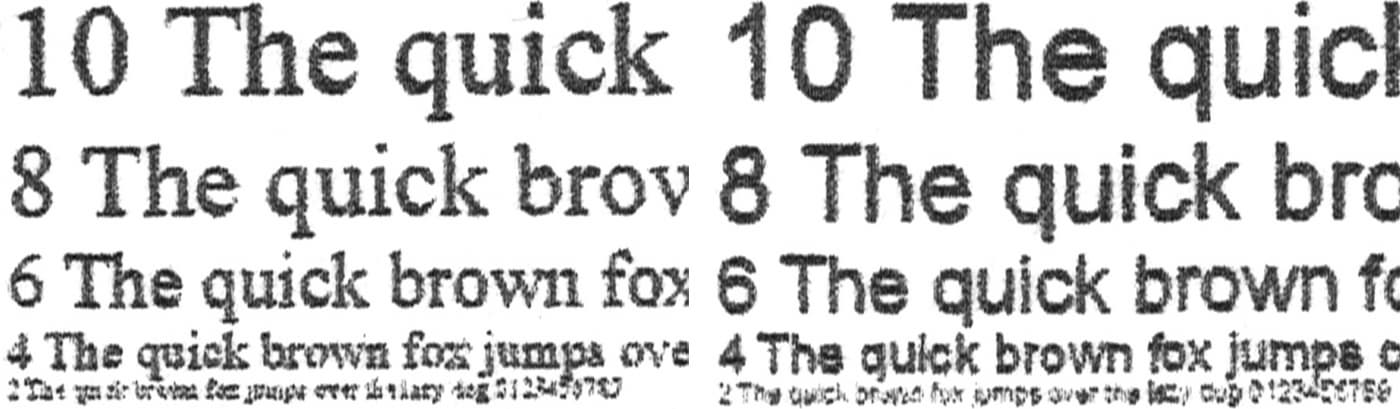 На разборчивость малых кеглей влияние экономии очень небольшое, разве что заливка становится еще чуть бледнее, а 4-й кегль с засечками читается с трудом.