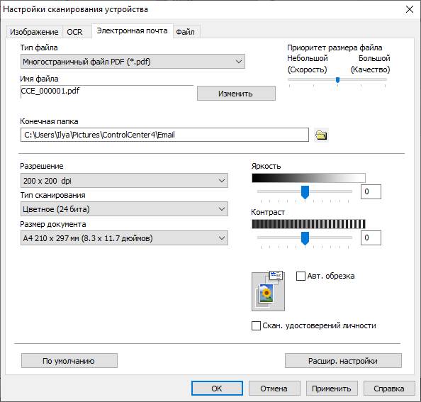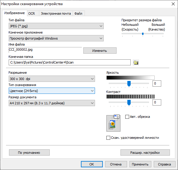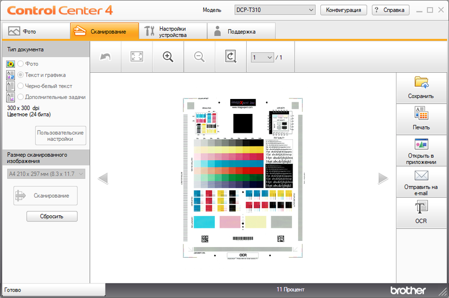 То есть однозначно рекомендовать любой из двух способов сканирования невозможно, все зависит от конкретной ситуации: так, если скан нужно сначала обработать и лишь потом сохранить, то лучше использовать драйвер, вызывая его из соответствующего графического приложения. А если требуется сохранить сканы нескольких документов в виде файлов, то, вероятно, лучше делать это с панели МФУ, задавая параметры не через меню аппарата (это не слишком удобно), а с помощью утилиты ControlCenter4.