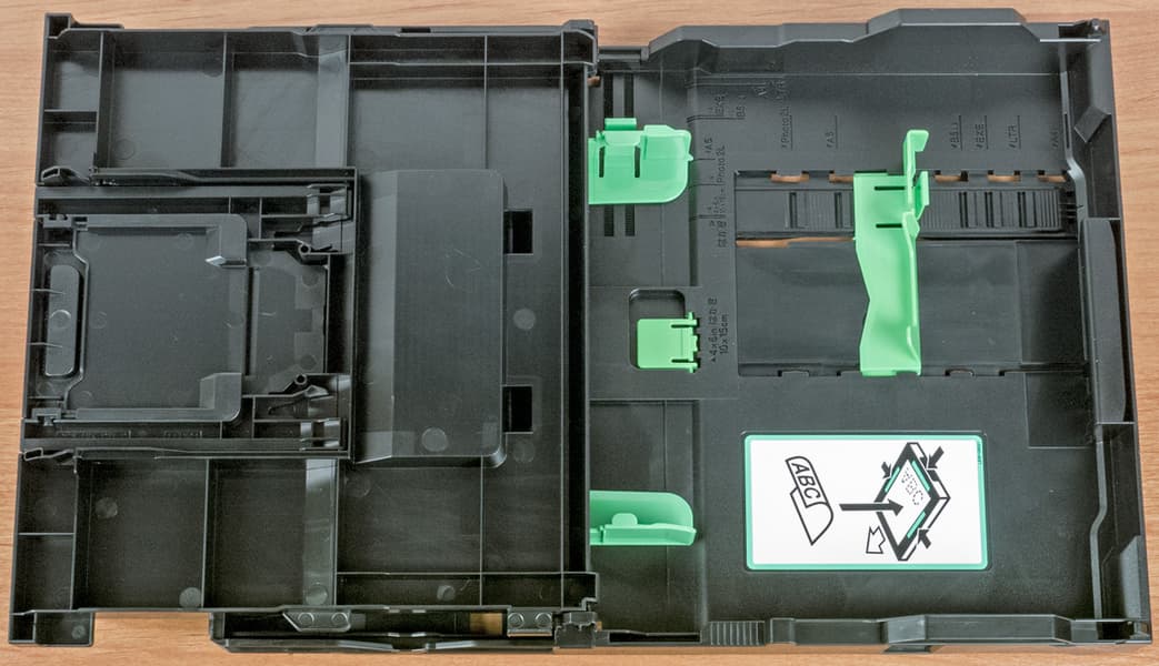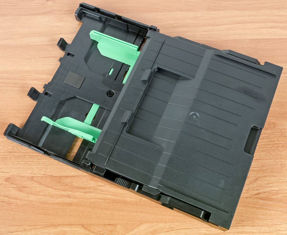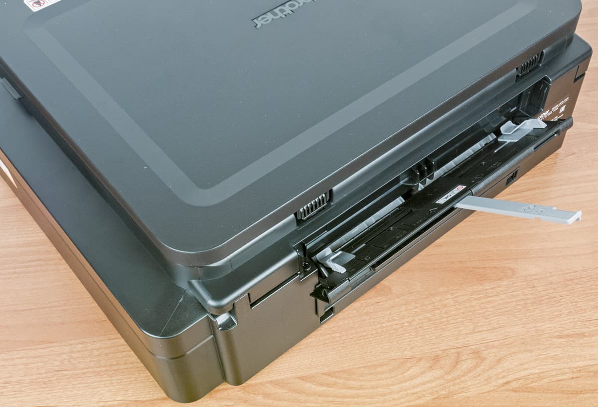 Приемным лотком является ниша между выдвижной кассетой и панелью управления, туда может поместиться до 50 листов. Отпечатки в него выводятся лицевой стороной вверх.