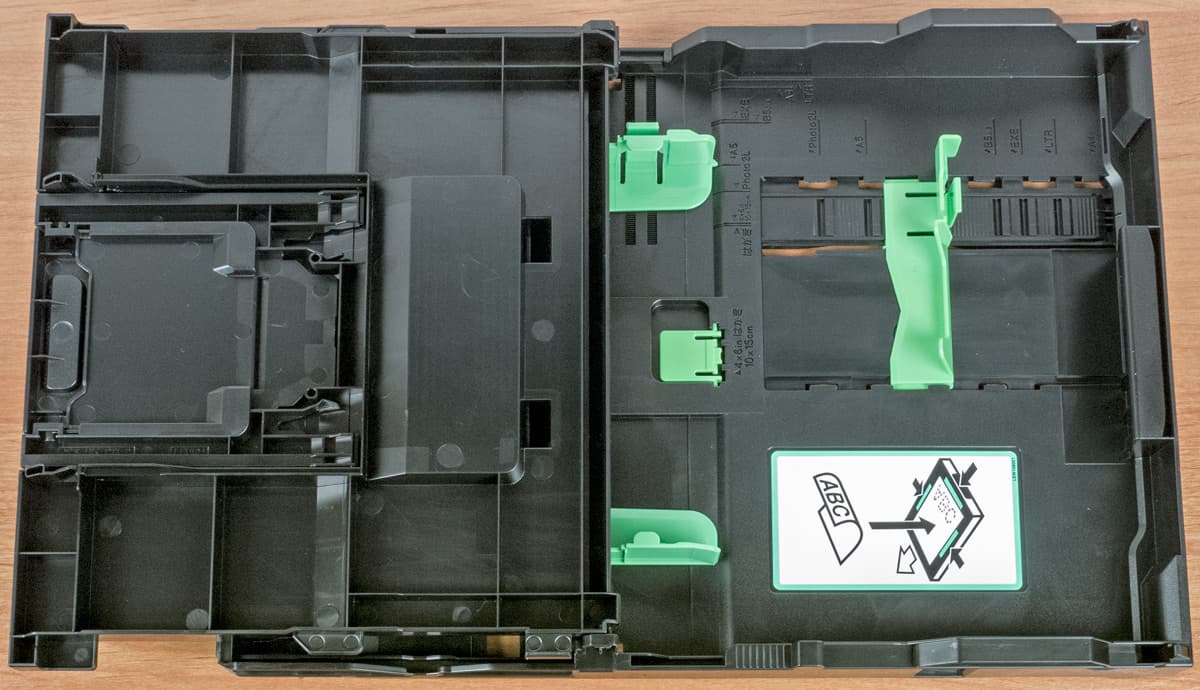 Изгиб носителя при подаче из кассеты близок к 180 градусам, а при подаче из заднего слота существенно меньше, поэтому диапазон допустимых плотностей у них разный (см. таблицу): наиболее плотные сорта бумаги придется подавать с использованием слота. Так, фотобумага Brother BP60MA имеет плотность 145 г/м², поэтому ее вполне можно укладывать стопкой в кассету, а подача Brother BP71G (260 г/м²) возможна только сзади по одному листу.