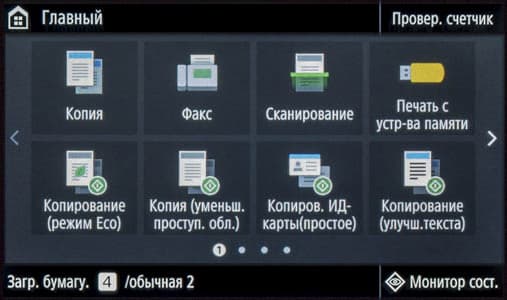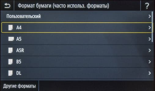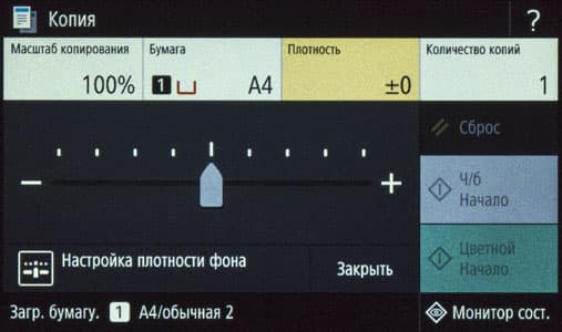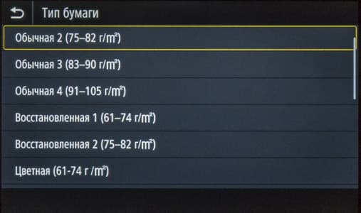 Плотность 200 г/м² обозначена для глянцевой бумаги, но такого типа носителя мы не нашли ни в меню самого МФУ, ни в драйверах. Для очень высокой плотности в меню есть установка «Плотная 3 (151—200 г/м²)», а в драйверах несколько иная: «С односторонним покрытием 3 / с покрытием 3 (151—200 г/м²)». Отметим: хорошо, что в настройках прямо указан диапазон плотностей, то есть не надо каждый раз уточнять его в мануале.