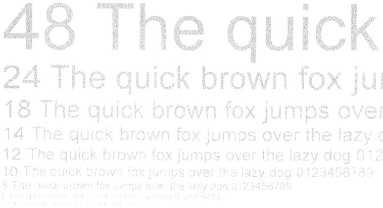 При печати с разрешением 600 dpi ситуация заметно хуже: 2-й кегль не читается, 4-й различим с трудом, заливка не столь плотная, растр заметен уже при небольшом увеличении, а контуры букв не такие ровные.