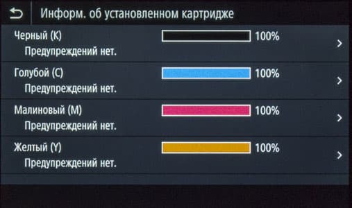 Аппарат поставляется с уже установленными расходными материалами — стартовыми картриджами, рассчитанными на 2300 черно-белых отпечатков А4 и 1200 цветных (здесь и далее по стандарту ISO/IEC 19798). Во всяком случае, так обозначено на сайте, хотя в инструкции для черного стартового картриджа говорится о ресурсе в 1200 отпечатков.