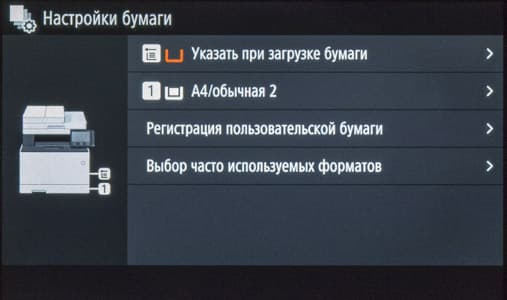 С конвертами есть маленькая хитрость: в меню МФУ при выборе формата бумаги для любого из лотков слово «конверт» отсутствует, надо ориентироваться на формат — DL или ISO-C5, и тогда на следующем экране будет подтверждено, что это именно конверт.