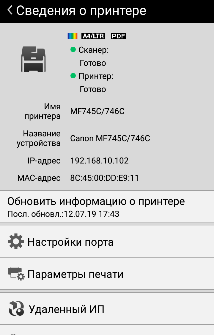 | Печать с мобильных устройств | да |