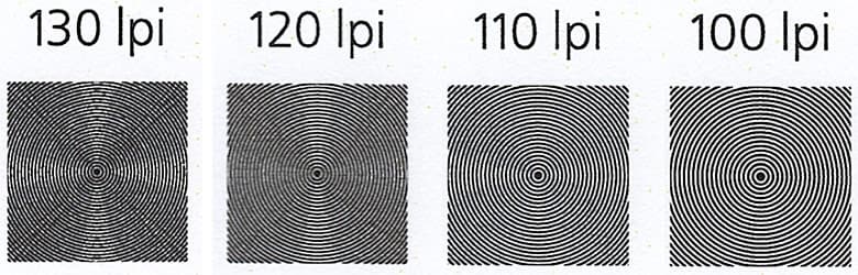 Максимальное количество различимых линий на дюйм — 110-120.