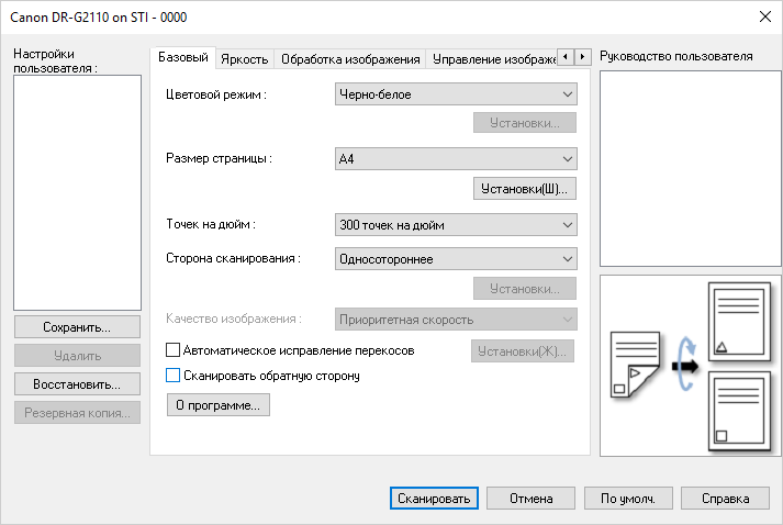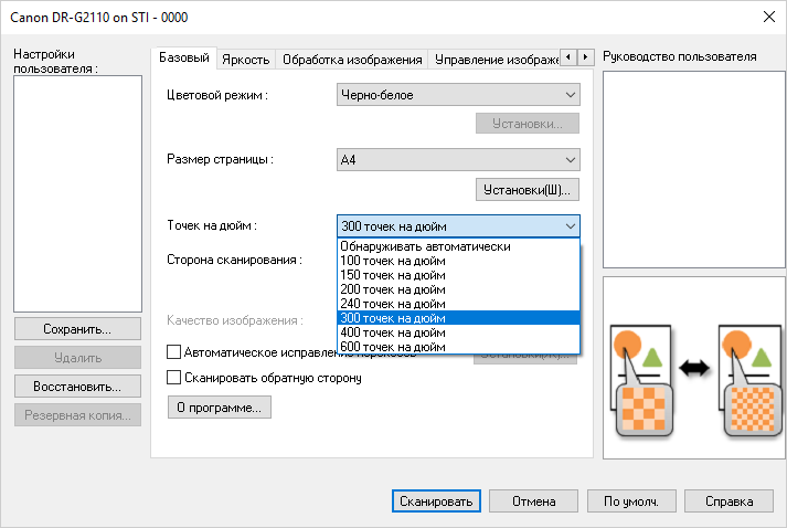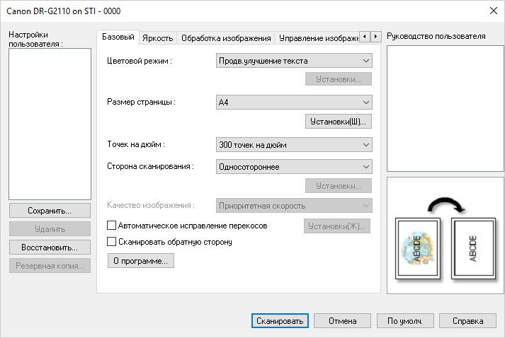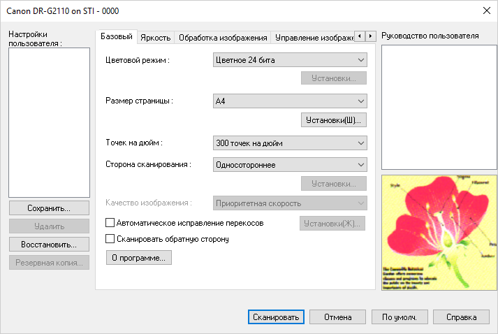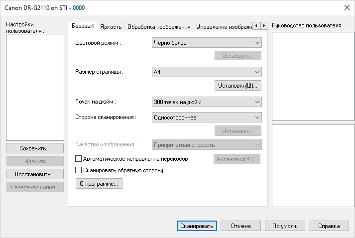 Интерфейс драйвера TWAIN совершенно не похож на хорошо знакомую нам утилиту ScanGear, используемую для сканирования в МФУ Canon. Конечно, основные настройки являются общими для сканеров любого типа — разрешение, формат оригинала, режим цветности, но есть и много специфических особенностей.