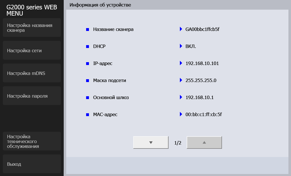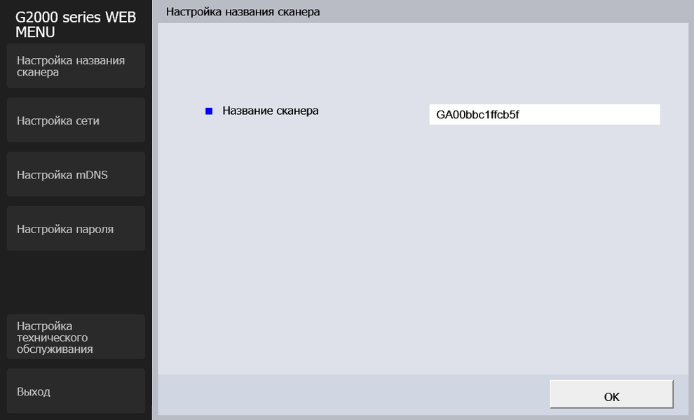 Правда, возможностей этот интерфейс предоставляет немного. Можно посмотреть информацию о сканере (не слишком подробную — например, показания счетчиков не отображаются) и задать для него название (по умолчанию это неудобочитаемая комбинация букв и цифр), задать настройки сети (то же самое можно сделать и с панели управления аппарата) и mDNS (а вот этого во встроенном меню нет), сменить пароль (но он нужен лишь для входа в сам веб-интерфейс).