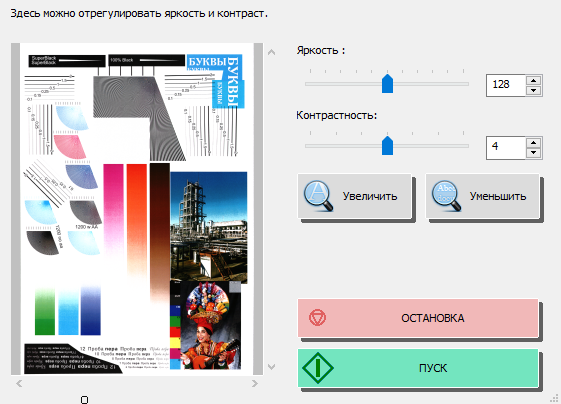 В начале процесса сканирования функция предварительного просмотра сканирует первую страницу и останавливается, позволяя пользователю отрегулировать яркость и контрастность, а затем продолжить сканирование с оптимальными установками.