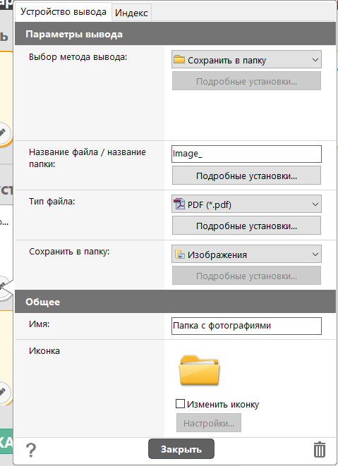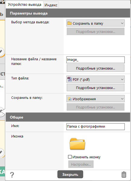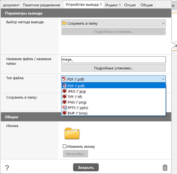 Для сохранения файлов можно использовать гибкую систему присвоения имен и определения папок, а также выбирать один из шести форматов.