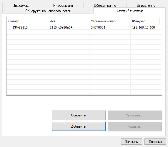 После установки новой версии появилась и кнопка «Добавить», после нажатия которой предлагалось ввести IP-адрес сканера и его название (произвольное, мы вписали DR-G2110), а дальше он благополучно появлялся как в списке окна, так и в приложениях, включая CaptureOneTouch.