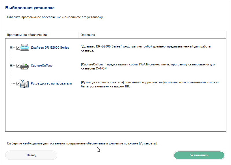 У приложения есть набор плагинов, позволяющих выводить сканы на электронную почту, на принтер, на FTP, в Microsoft SharePoint и другие приложения. От любого из этих плагинов и даже от самого приложения CaptureOneTouch можно отказаться, если на начальном этапе инсталляции ПО применить выборочную установку.