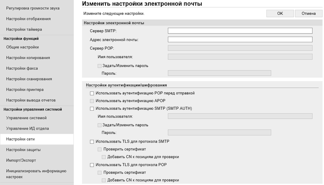 Для доступа к некоторым настройкам, включая сетевые, придется ввести ИД и PIN администратора. По умолчанию оба эти значения одинаковые: 7654321, но их можно менять для обеспечения безопасности.