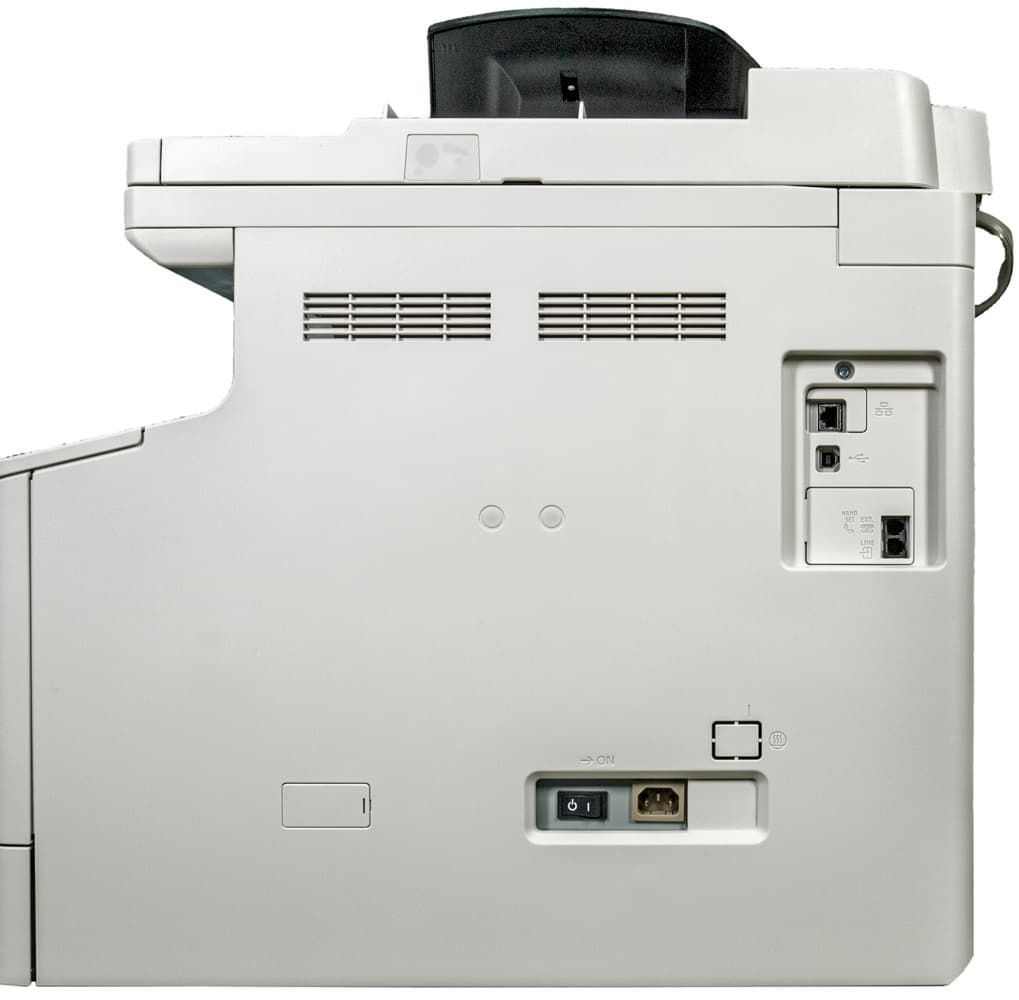 Все разъемы находятся на правом боку аппарата, их не так много: сзади повыше — порты USB и Ethernet, гнезда для подключения к телефонной линии и дополнительного телефонного аппарата или трубки; пониже и в середине — разъем для кабеля питания и тумблер Power.