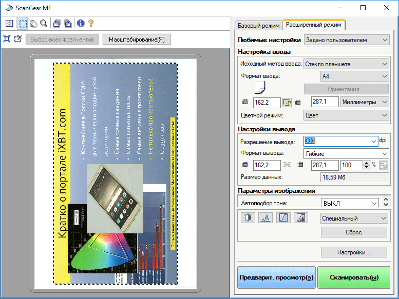 Сканирование с компьютера (драйвер ScanGear) — от старта кнопкой приложения до появления последней страницы в его окне.