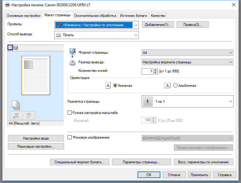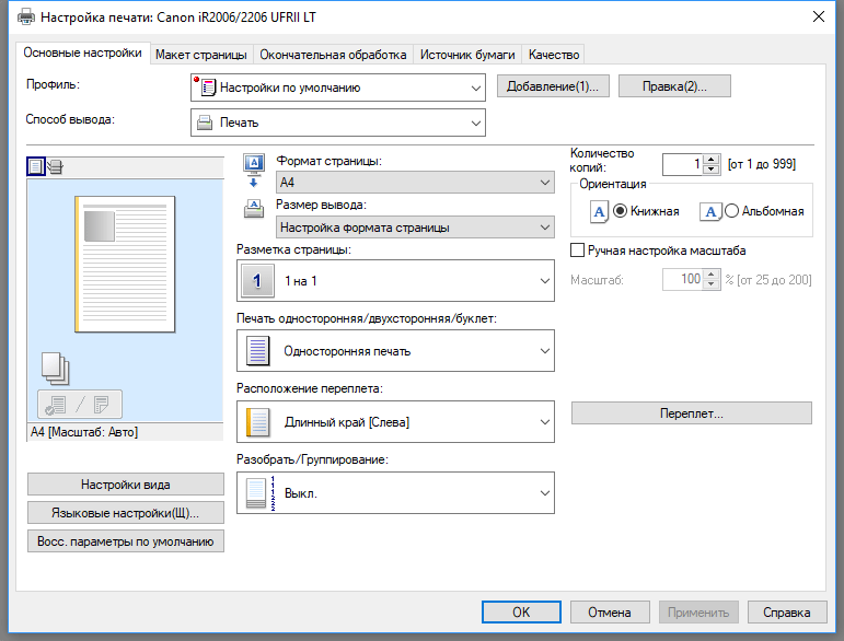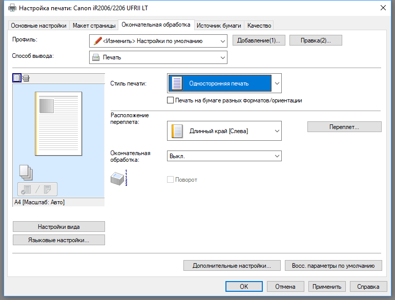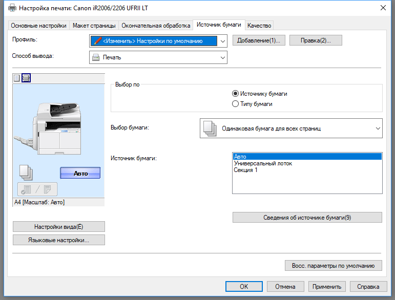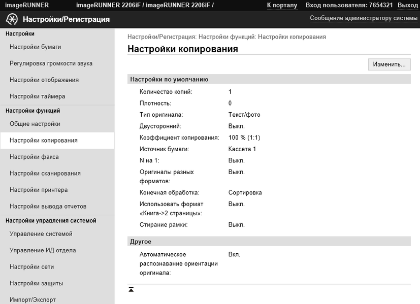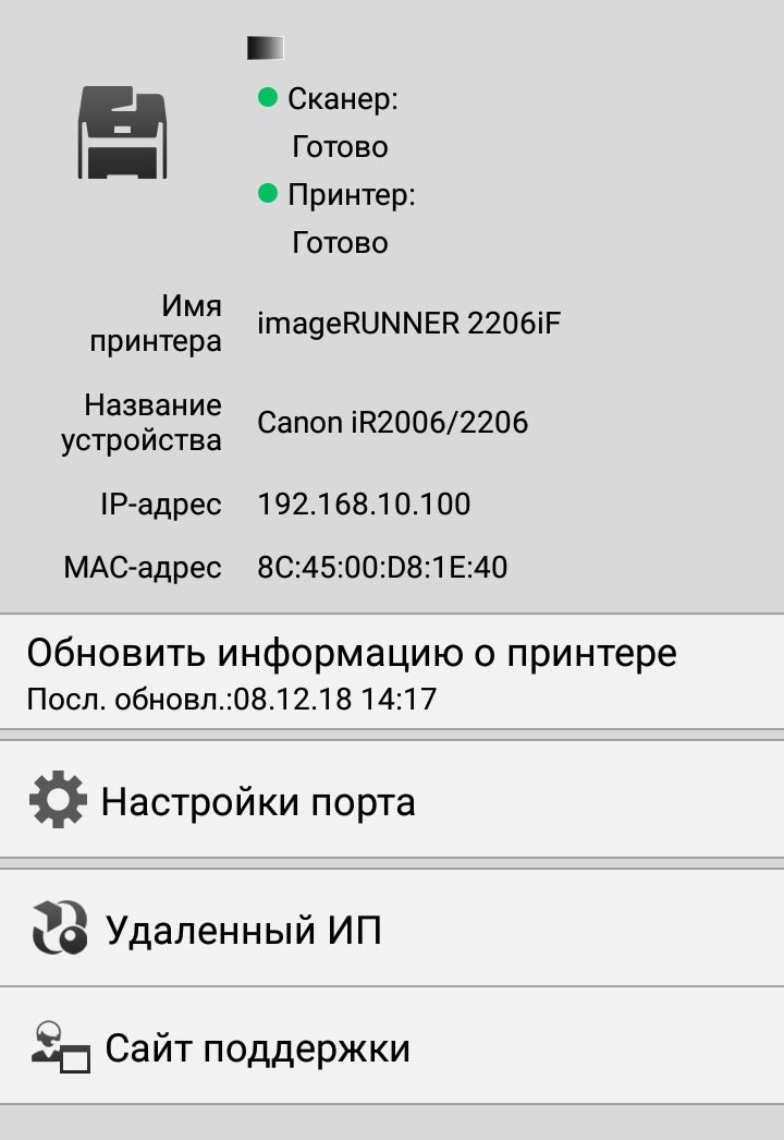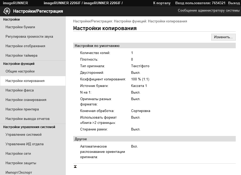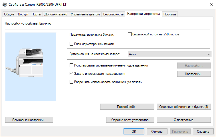 Список опций длиннее, но здесь всё зависит от модели. Мы перечислим лишь те, которые доступны для рассматриваемого нами аппарата Canon iR 2206iF.