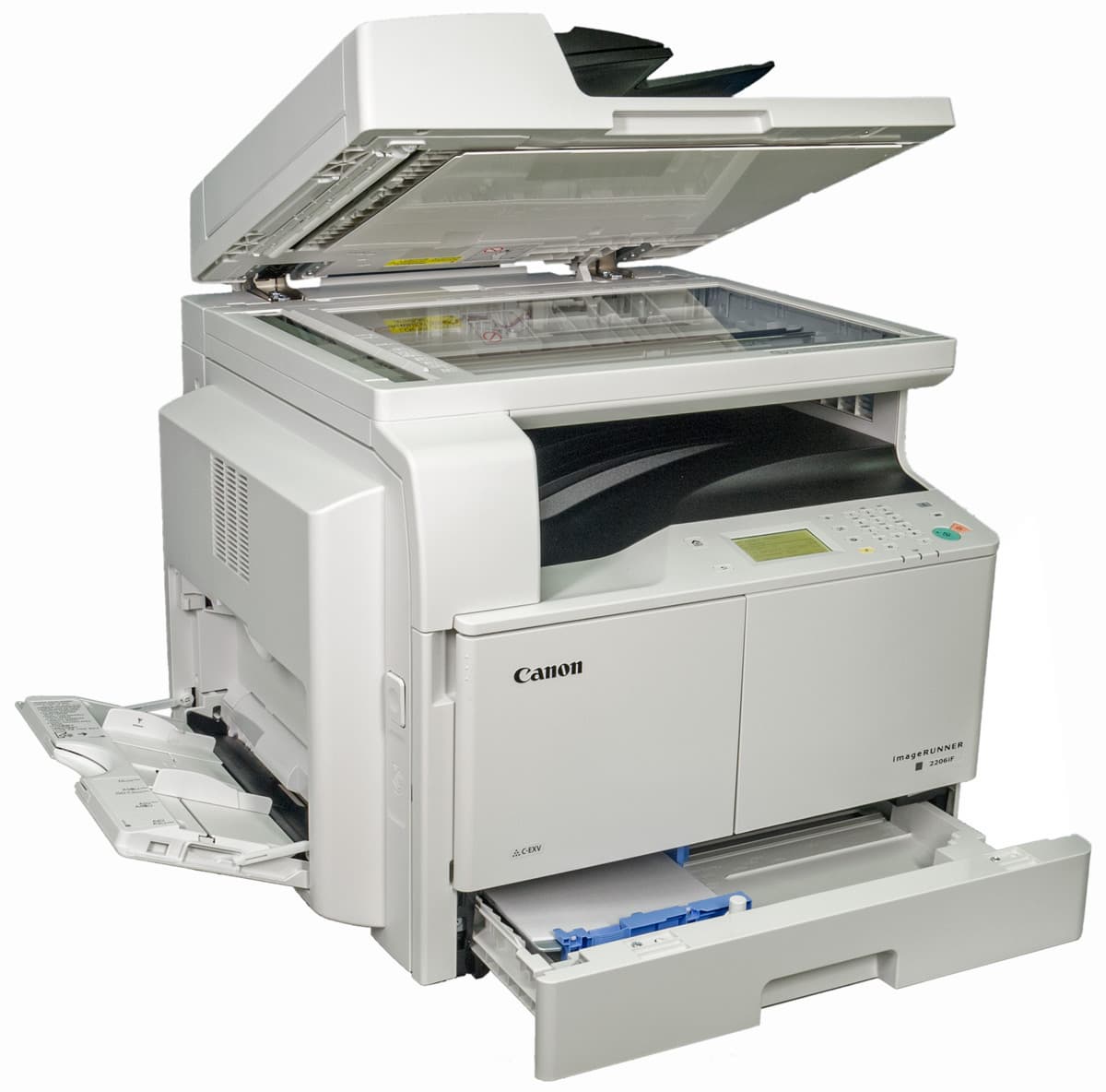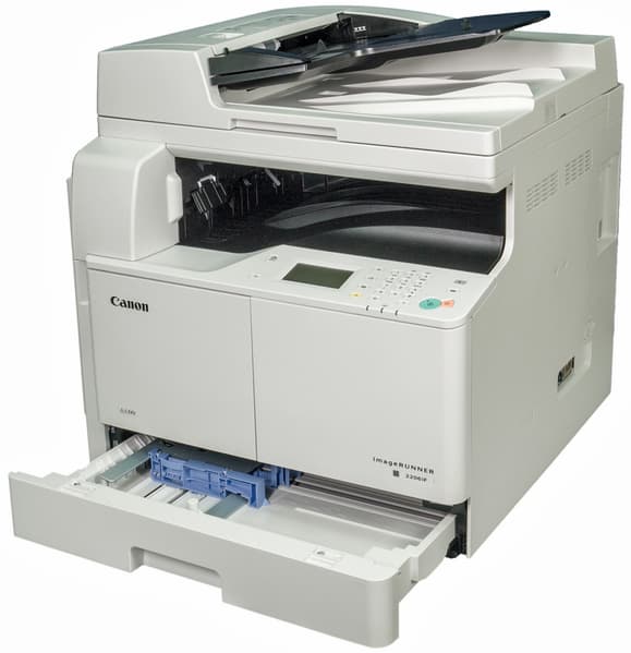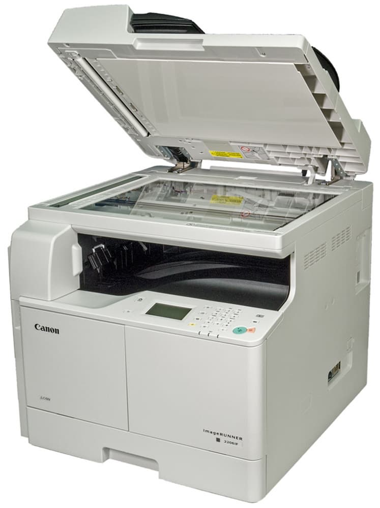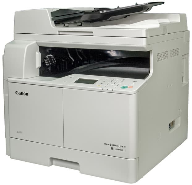 На данный момент предлагаются два устройства «три в одном», то есть принтер-копир-сканер — iR 2206 и iR 2206N (разница в штатном оснащении: например, у iR2206N есть сетевые адаптеры Ethernet и Wi-Fi, а также в списке доступных опций), и аппарат «всё в одном» (включая факс) — Canon imageRunner 2206iF, который мы и рассмотрим.