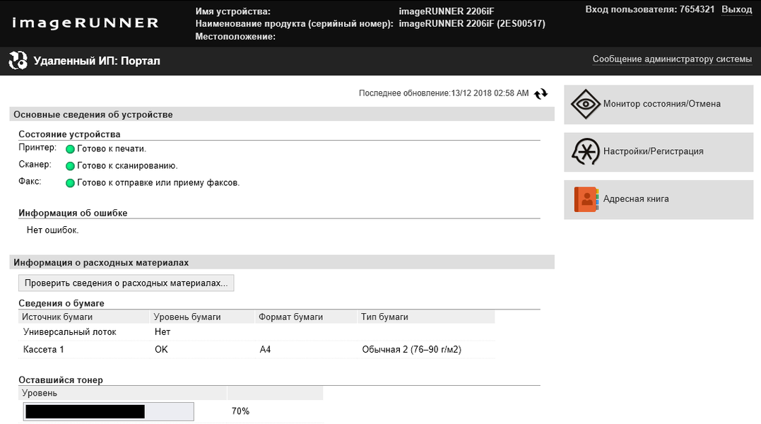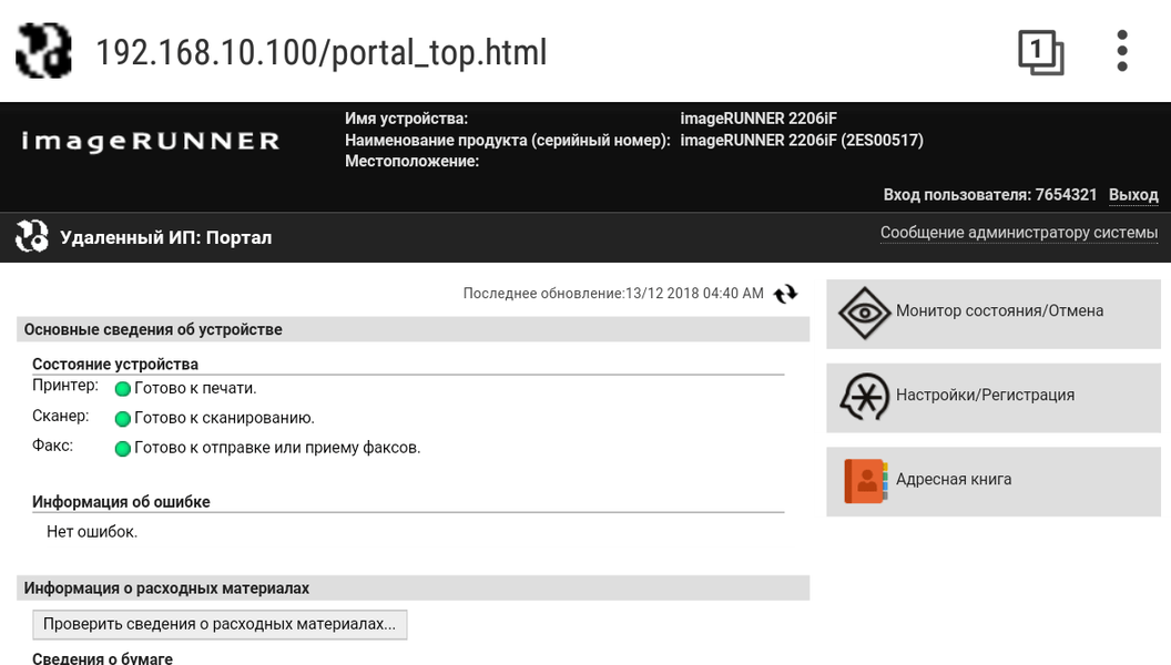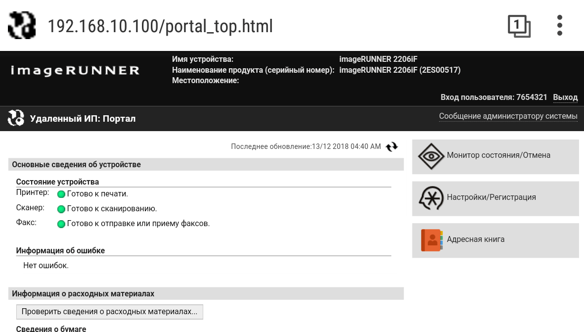 - Веб-интерфейс (Remote UI или «Удаленный ИП»)