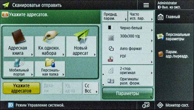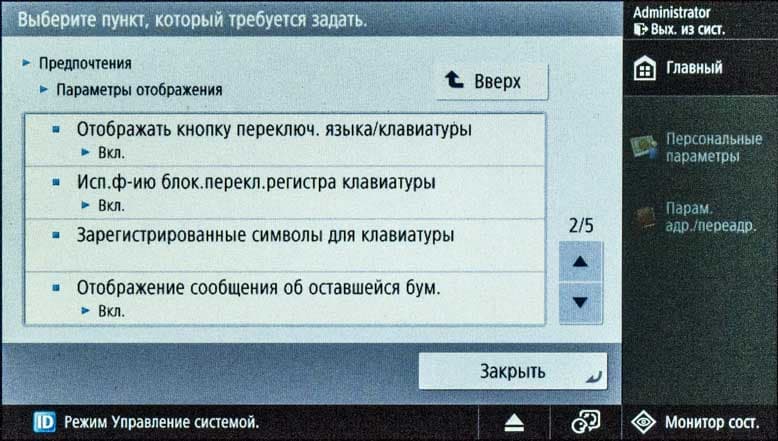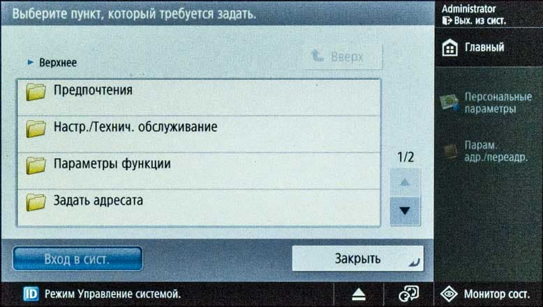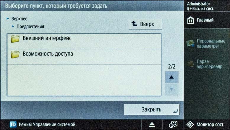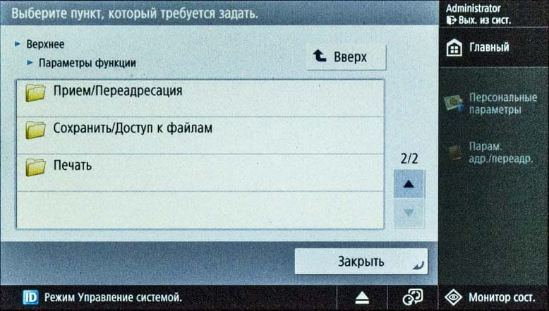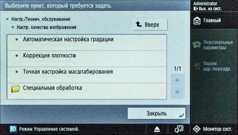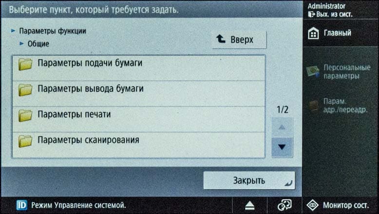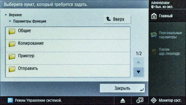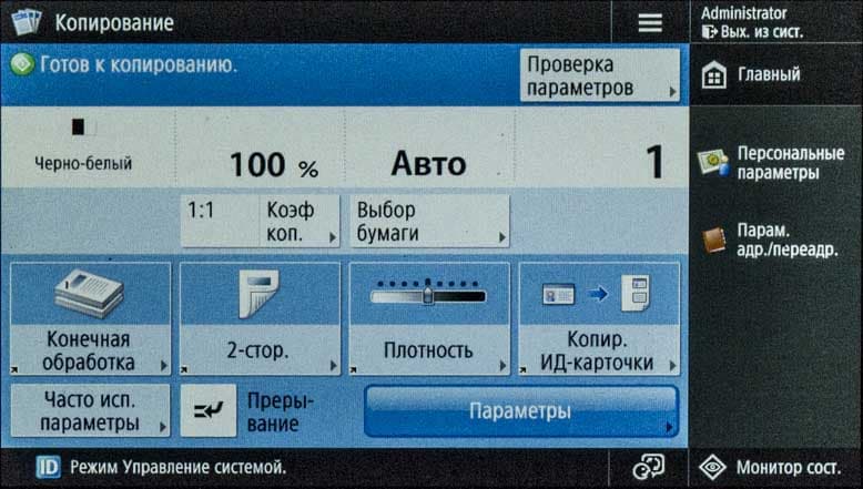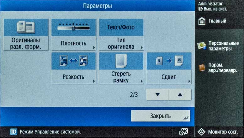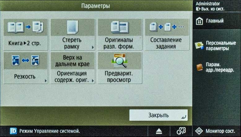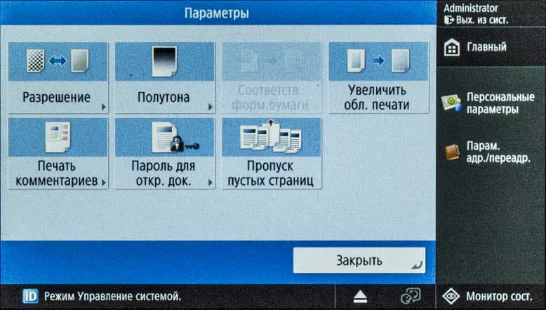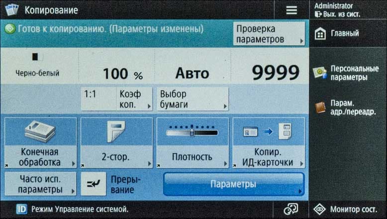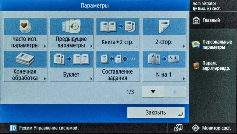 Кратко опишем возможности меню — оно похоже на то, что мы видели в других побывавших у нас аппаратах imageRunner.