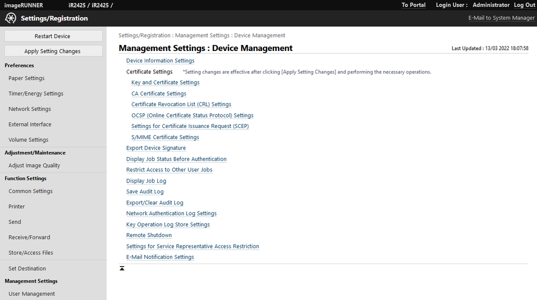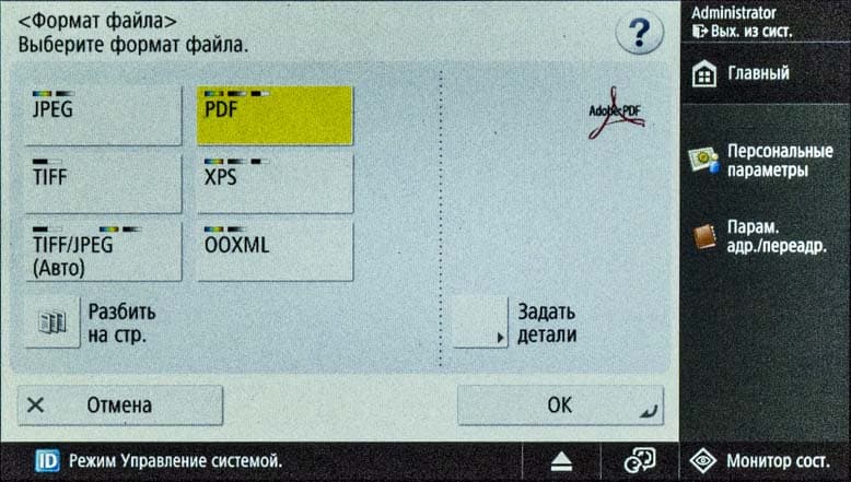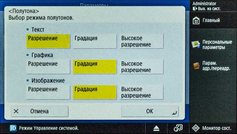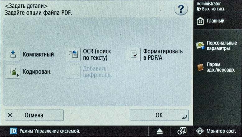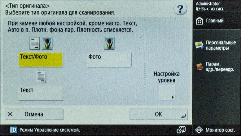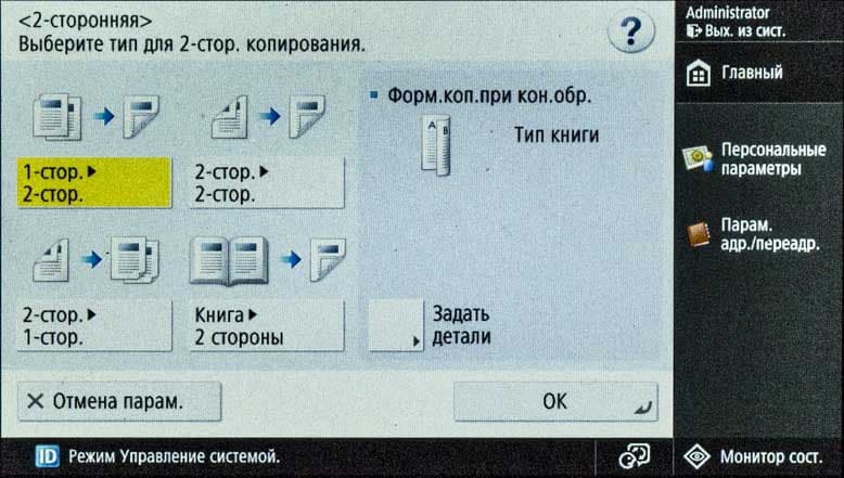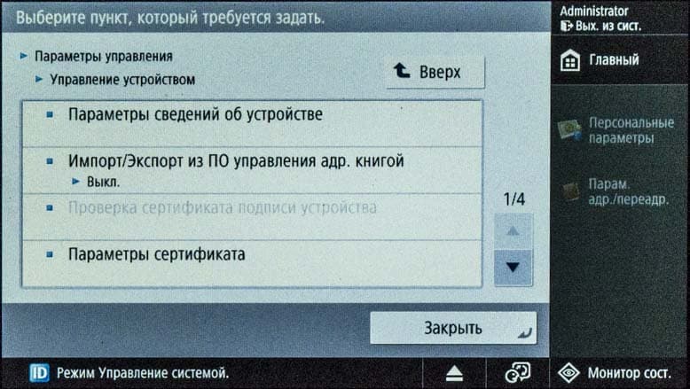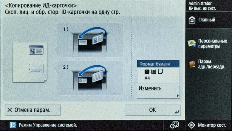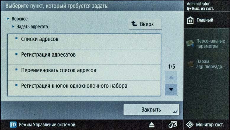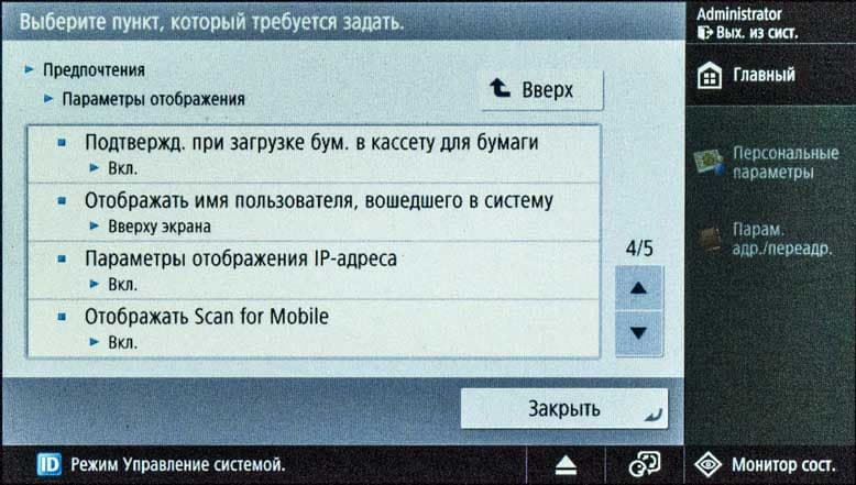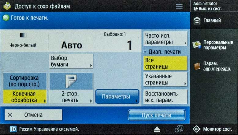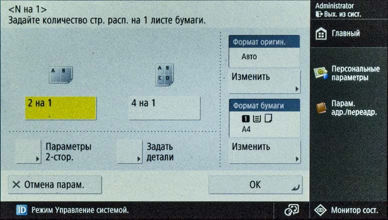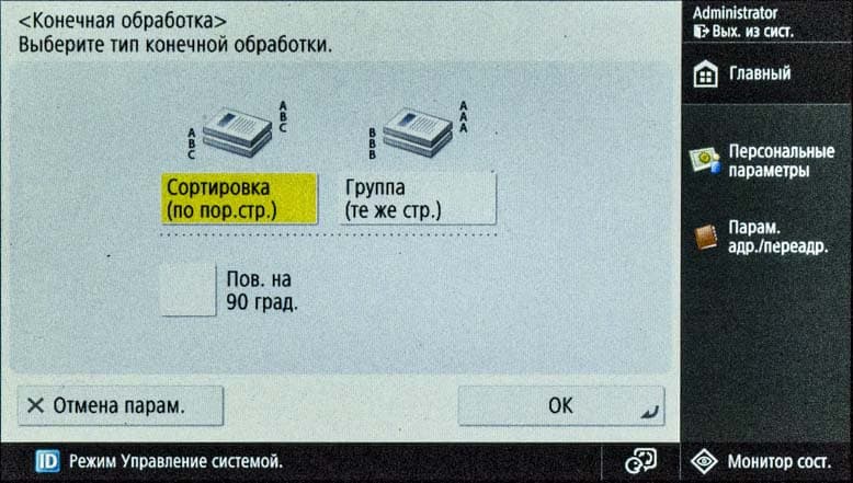 Кратко опишем возможности меню — оно похоже на то, что мы видели в других побывавших у нас аппаратах imageRunner.