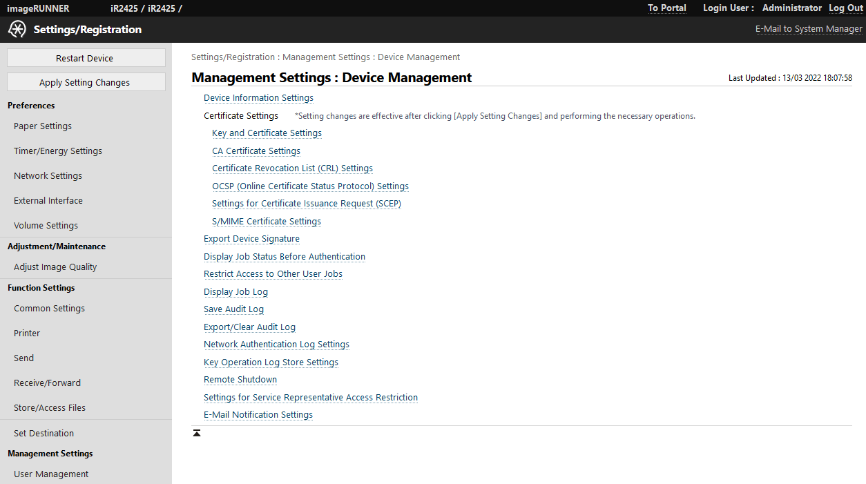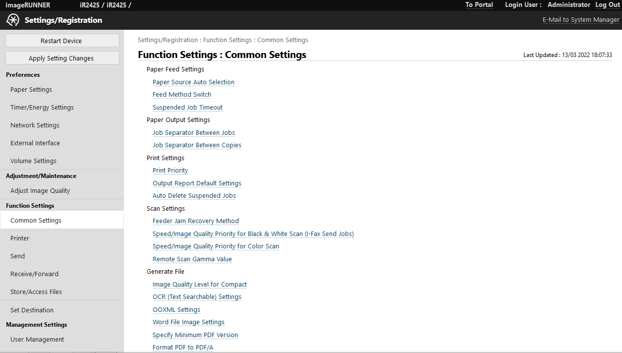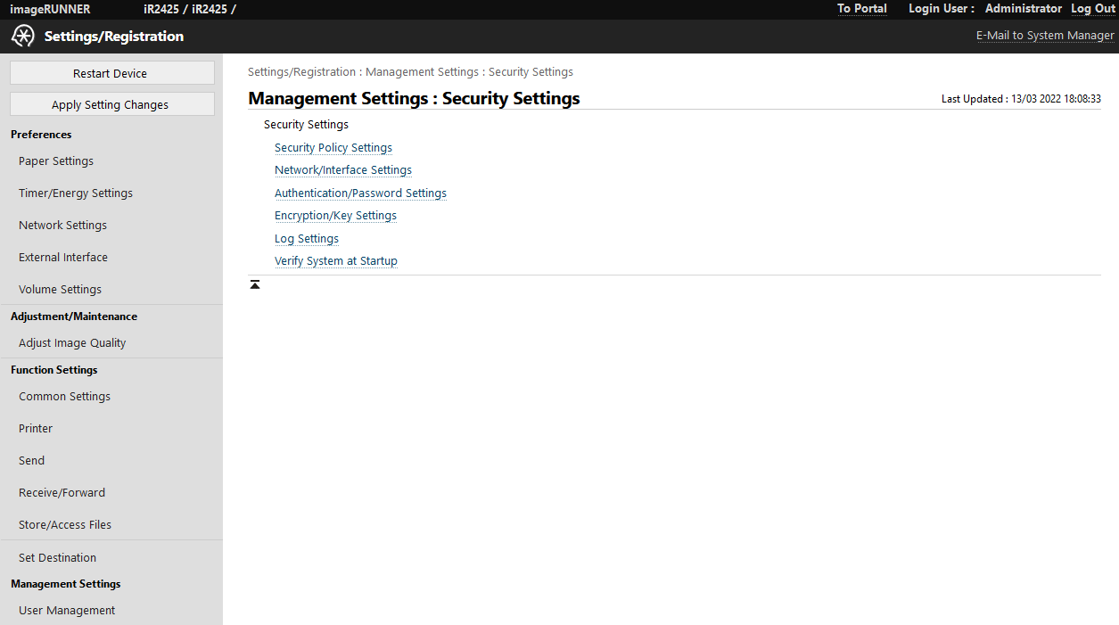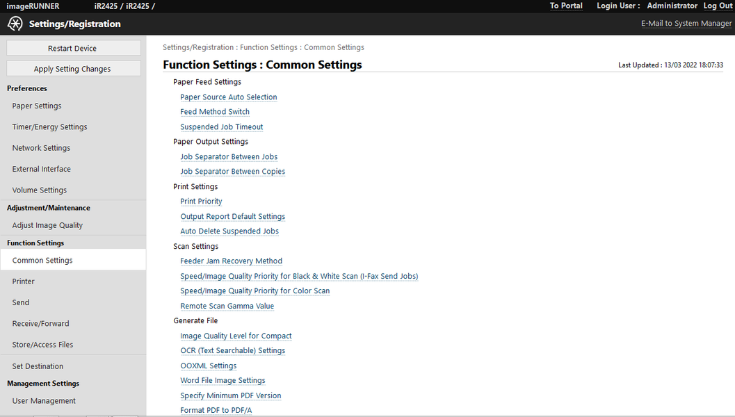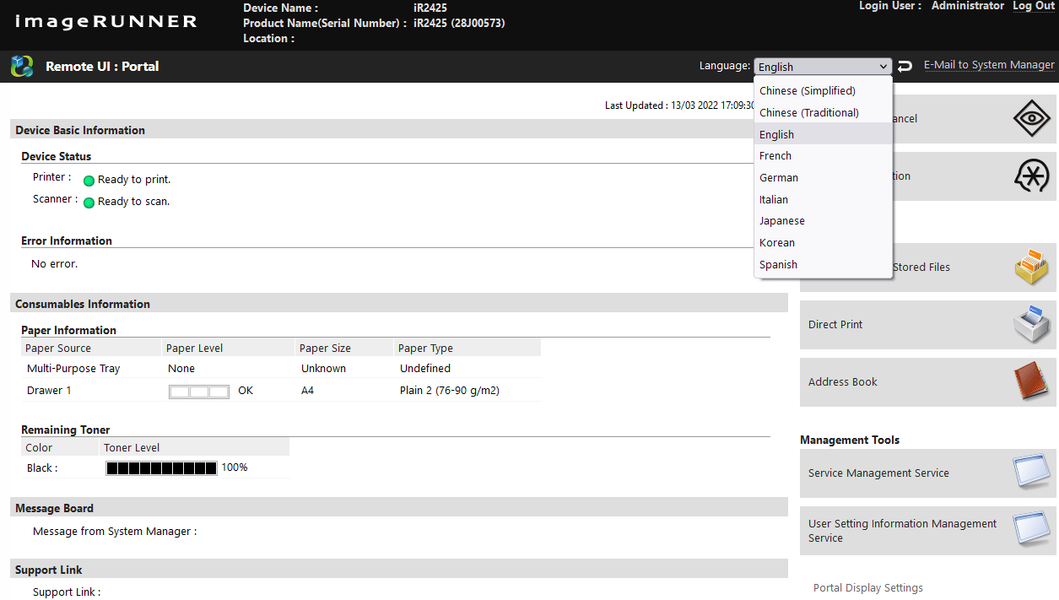 Но для этого потребуется войти в систему, в общем случае — с правами администратора. Логин и пароль, установленные по умолчанию, указаны в инструкции: Administrator и 7654321, и каждый раз при попытке входа будет возникать предложение сменить этот пароль для повышения безопасности. В нашем экземпляре МФУ безопасность уже повысили, но, как водится, новый пароль сообщить нам забыли. Тем не менее, методика сброса пароля легко доступна в интернете.