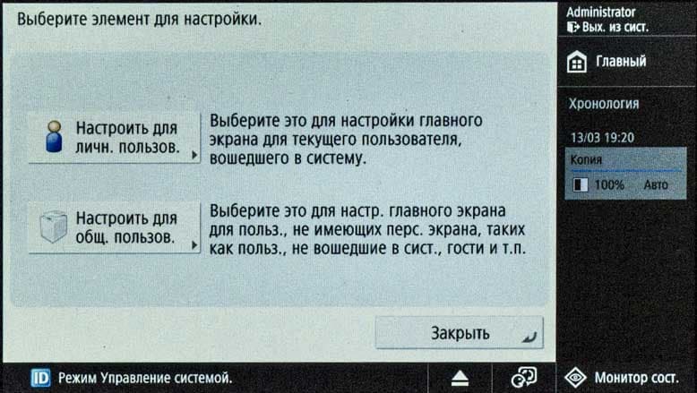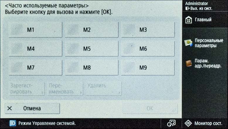 При наличии нескольких пользователей, зарегистрированных на данном аппарате, подобные индивидуальные настройки можно сделать для любого из них. Естественно, пользователю придется сначала идентифицировать себя, введя выданные администратором логин и пароль либо воспользовавшись IC-картой, если установлена соответствующая опция; тогда появится и возможность определять персональные параметры в соответствии со своими предпочтениями, включая создание сетевых папок и личных кнопок в быстром меню.