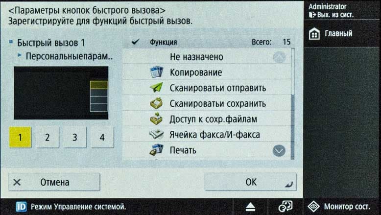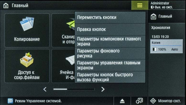 Персонализация предусмотрена не только для домашней страницы, но и для набора настроек, которые отображаются при выборе определенной функции, а кнопки для наиболее востребованных операций (правда, не всех, которые имеются на домашней странице) можно вынести в меню быстрого вызова, которое будет находиться в правой части экрана, обеспечивая доступ к этим функциям без необходимости возврата на домашнюю страницу.