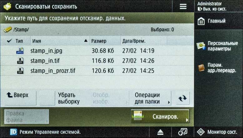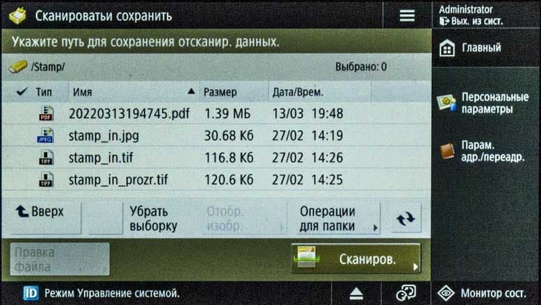 Сканирование: на флешку — с сохранением в PDF/OCR, от старта кнопкой панели управления до появления надписи «Сохранение завершено»; с компьютера (драйвер ScanGear) — от старта кнопкой приложения до появления последней страницы в его окне.