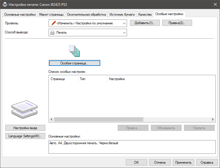 Конверты инструкция требует загружать в универсальный лоток, хотя установки драйвера печати не запрещают использовать для них и выдвижную кассету (в отличие от двусторонней печати, которая при выборе конверта автоматически отключается с выдачей предупреждения).