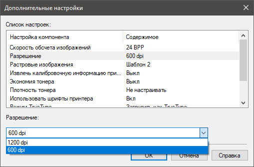 Существенной разницы между отпечатками, сделанными с разрешениями 600 и 1200 dpi, нет: отличия можно обнаружить лишь при значительном увеличении. Поскольку скорость при более высоком разрешении существенно уменьшается, нет смысла печатать подобные документы в таком режиме.
