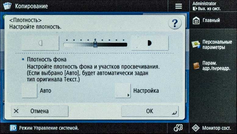 При копировании лучше немного уменьшать плотность, иначе копии получаются излишне темными. Диапазон различимости шкалы плотностей существенно сокращается.