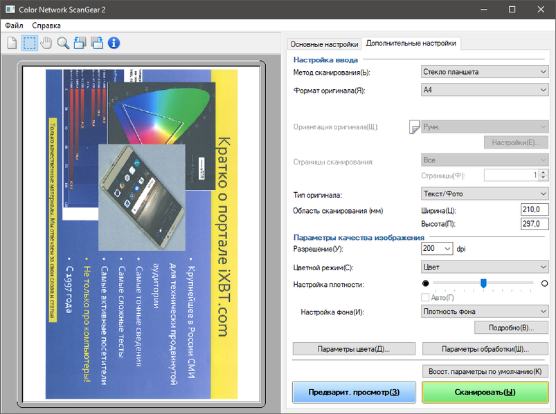 Для автоподатчика сканера заявлены предельные значения в 128 г/м², если оригинал один, и 105 г/м² для непрерывного сканирования. Понятно, что проблема здесь возможна единственная: слишком плотная бумага. Поэтому мы попробовали существенно более плотные сорта: при двустороннем сканировании дважды по 10 листов бумаги 160 г/м² были обработаны нормально.