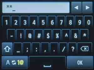 Управление функциями, режимами и настройками МФУ в основном производится с помощью цветного сенсорного ЖК-экрана с диагональю 3,5", расположенного в центре панели. Дополнительных кнопок всего шесть: слева Power (плюс соответствующий светодиодный индикатор) и две навигационные — перехода к домашней странице меню и возврата к предыдущему экрану; еще один индикатор показывает наличие принятых и сохраненных в памяти факсимильных сообщений. Справа две кнопки Color и Black для запуска процедур копирования, сканирования или отправки факса, а также Stop для отмены текущей операции; рядом индикатор Alarm, свидетельствующий об ошибке.