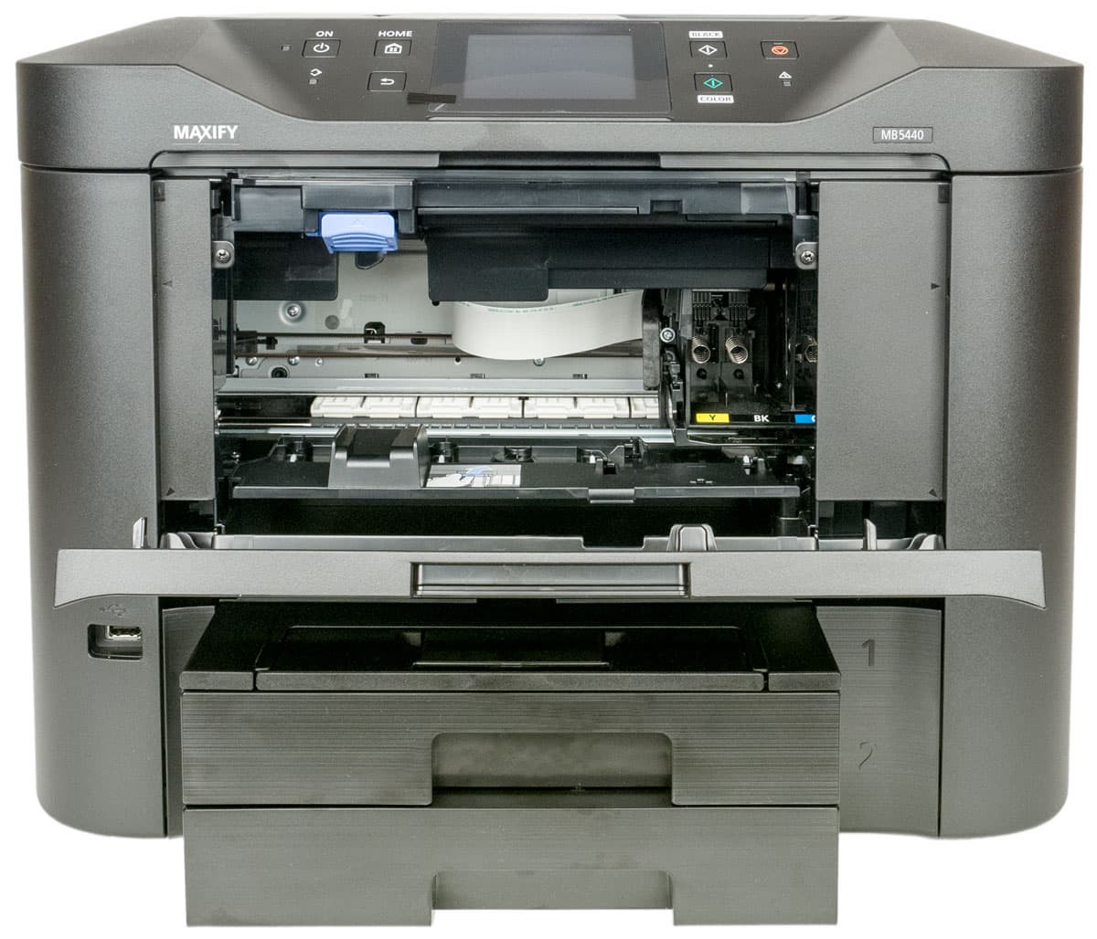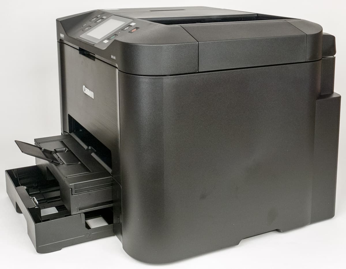 МФУ, или многофункциональный принтер, Canon Maxify MB5440 в целом оправдал наши ожидания: при не самой высокой цене он отлично оснащен — два подающих лотка, дуплекс, автоподатчик оригиналов с одновременной обработкой двух сторон, к тому же имеет неплохую производительность и ёмкие картриджи.