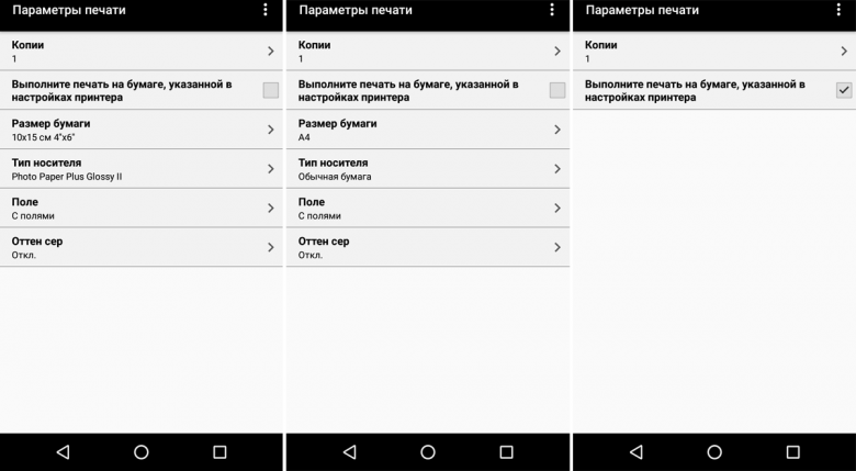 Теперь другие носители. Отметим, что градаций по толщине или плотности в установках для бумаги нет — либо обычная бумага, либо фотобумага, поэтому для плотной бумаги мы указывали «обычная».