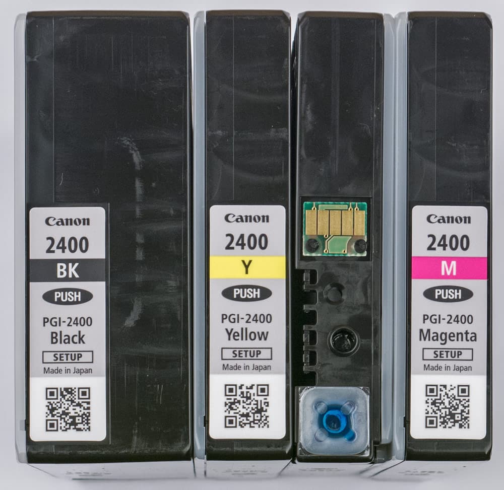 Все картриджи обозначаются PGI-2400 с добавками, обозначающими цвет (C, M, Y и BK) и вместимость. На официальном сайте упоминаются только картриджи XL: