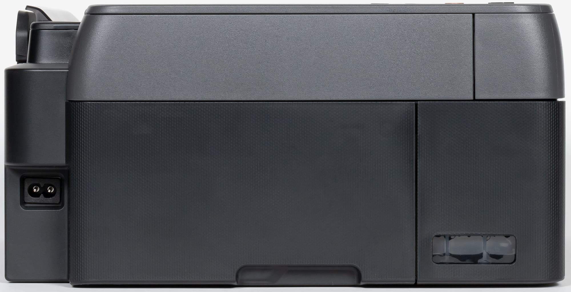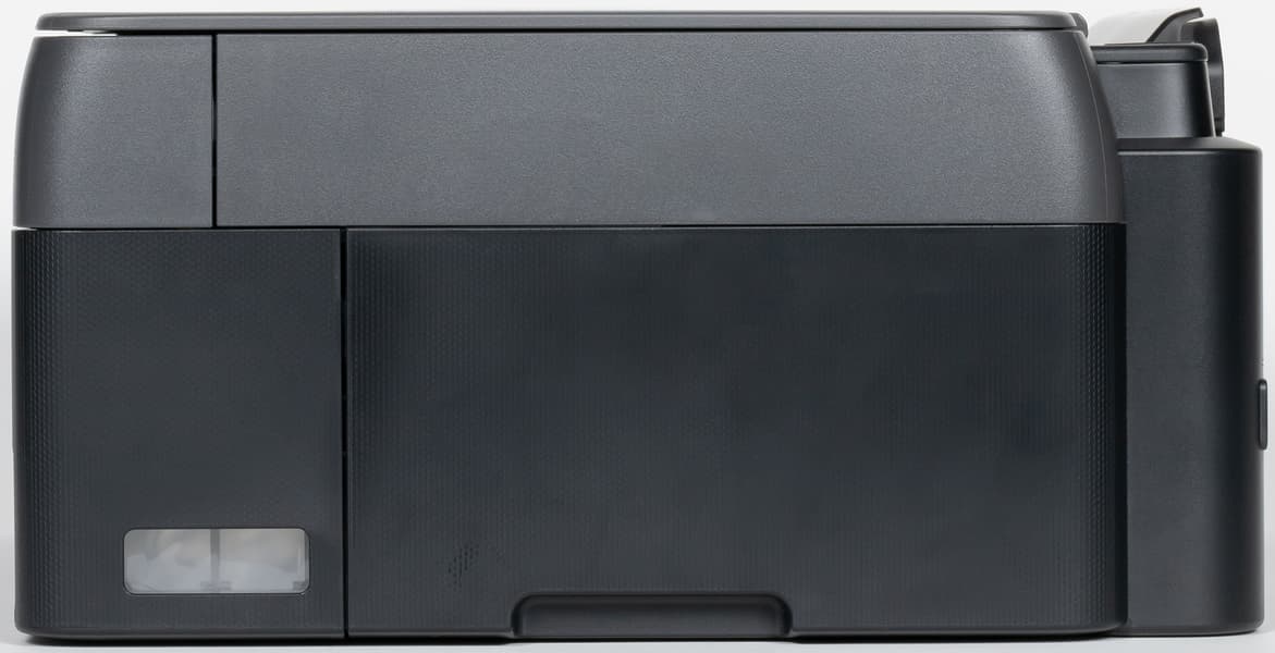 Приемный лоток горизонтальный, расположен в передней части принтера, вместимость в спецификации не упоминается. Он имеет одну выдвижную часть без боковых и переднего ограничителей, но с откидным элементом, приподнимающим передний край выходящего листа — благодаря ему отпечатки не выскакивают далеко вперед и не падают, хотя и укладываются в лоток не идеально ровно.