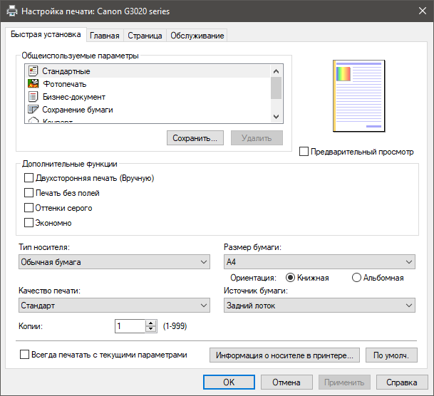 | Бумага обычная, с полями, бесшумный режим выключен | стандартное | 0:50 |