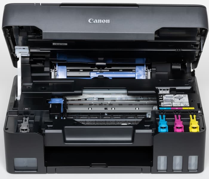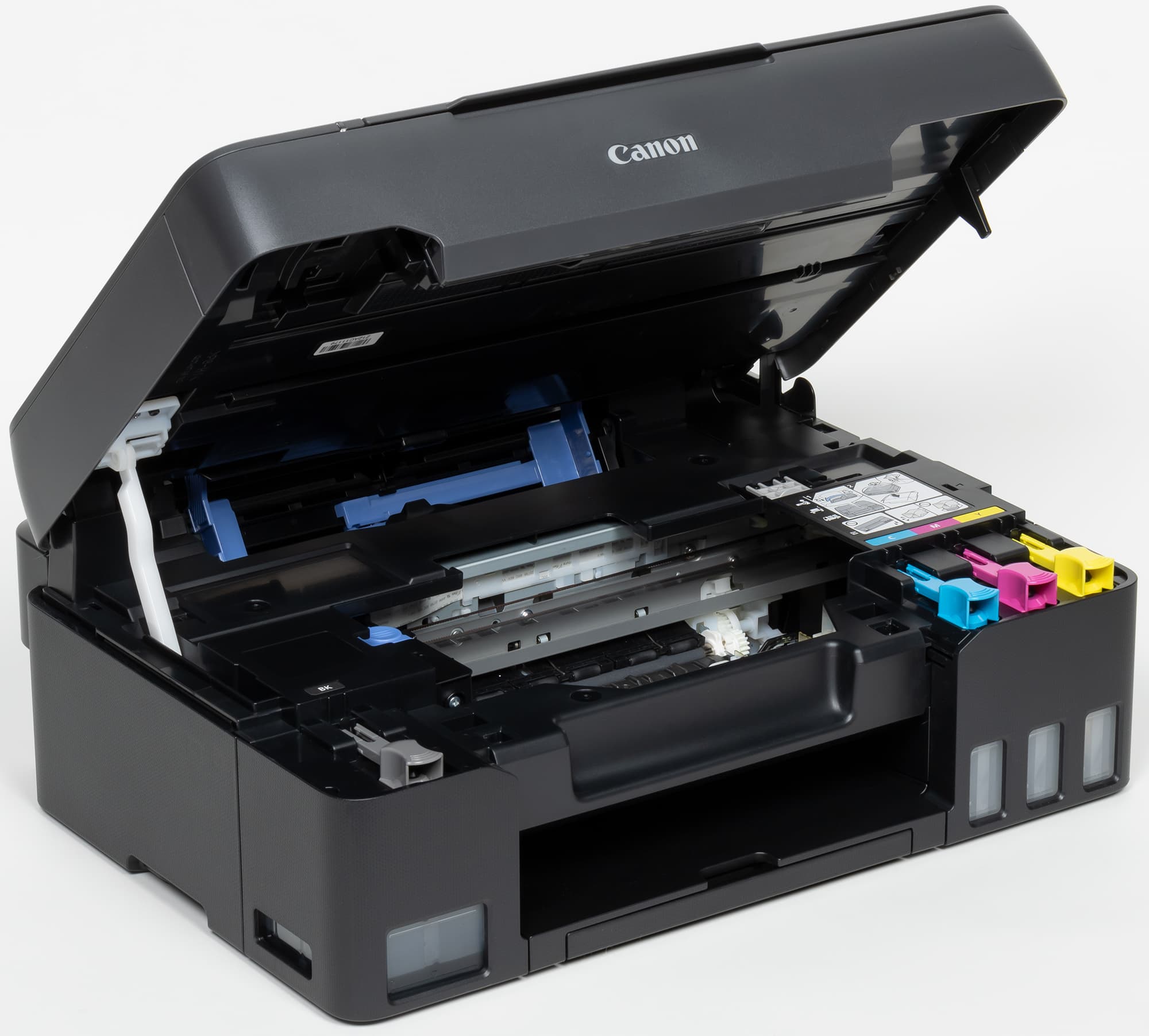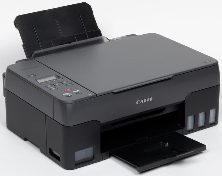 Конечно, все еще доступен более ранний аналог — также протестированное нами МФУ Pixma G3400, параметры, оснащение и цена которого фактически те же, что и у рассмотренной в данном обзоре модели. Однако новинка имеет существенное преимущество перед упомянутыми аппаратами: заменяемый пользователем абсорбер, что при интенсивной эксплуатации позволит исключить регулярные визиты в сервисный центр.