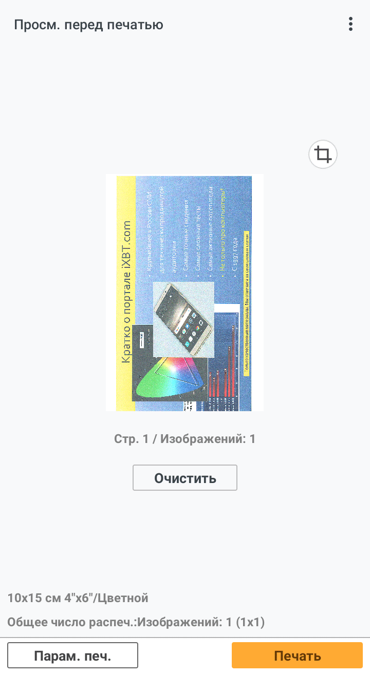 Мы печатали в цвете фотоизображение формата А4 из PDF-файла в одном экземпляре, подключение USB.