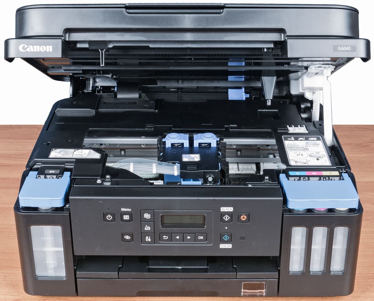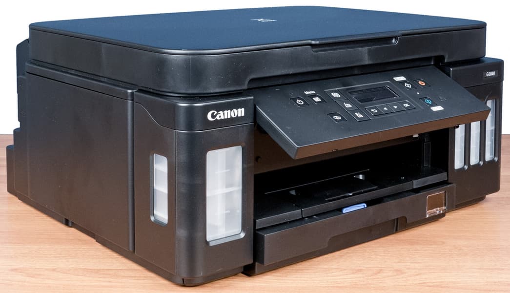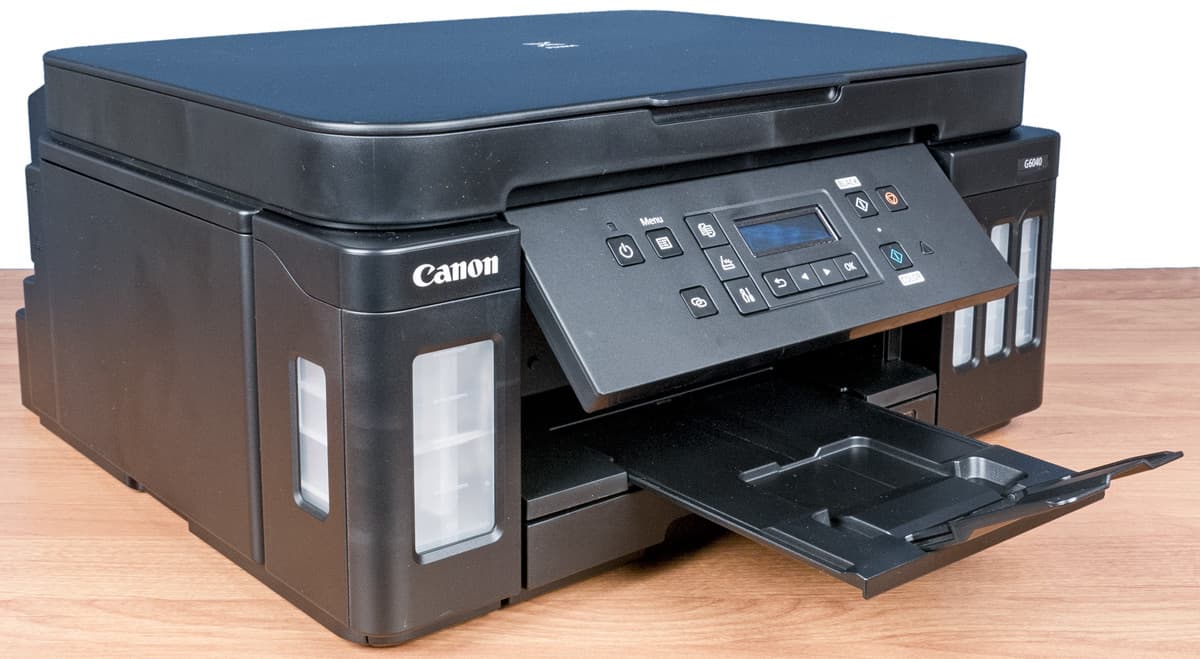 Очередное обновление модельного ряда состоялось весной 2019 года, когда были представлены три устройства: монохромный принтер GM2040, цветной принтер G5040 и цветное МФУ (или, как его именуют в официальных материалах, многофункциональный принтер «3 в 1») Canon Pixma G6040, с которым мы познакомимся поближе и посмотрим, что нового предлагает производитель.