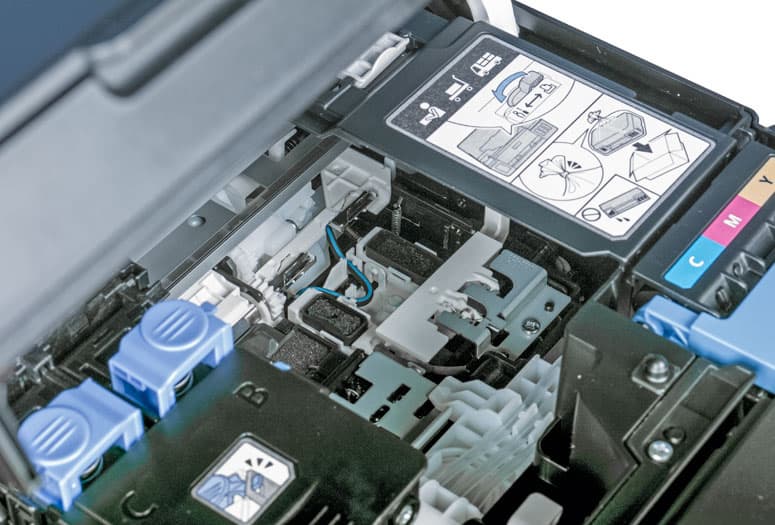 И не надо забывать про абсорбер или «памперс» — устройство сбора чернил, вытекающих из головок, например, во время их прочистки соответствующими сервисными процедурами. Абсорбер тоже время от времени надо заменять, а его счетчик сбрасывать; владельцы картриджных струйных принтеров редко сталкиваются с подобной проблемой, прежде всего по причине дороговизны картриджей, которая поневоле ограничивает объемы печати (если, конечно, используются именно оригинальные расходные материалы, а не «совместимые» заправочные комплекты или СНПЧ той или иной степени кустарности).