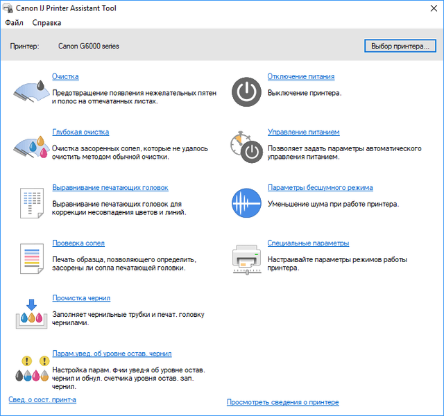 Правда, в инструкции среди кодов поддержки (то есть номеров ошибок), появляющихся на индикации, есть 1215 — причина такая: «выполняется замена печатающей головки», или 1431, 1432 — «не удается определить печатающую головку», и далее описывается извлечение и повторная установка головок. Однако это вовсе не действия по инициативе владельца, а лишь реакция на ошибку; к тому же остается открытым вопрос: можно ли купить головку или все же придется везти аппарат в АСЦ. И, конечно, интересна была бы цена — для G3400 замена одной головки в официальном сервисе оценивается примерно в $45-$50, мы нашли и предложения таких головок (вроде даже оригинальных) для самостоятельной замены (цена около $40), но надо еще знать, как правильно провести замену, чтобы не уделать и себя, и весь аппарат чернилами.