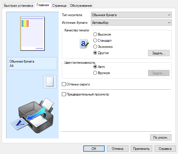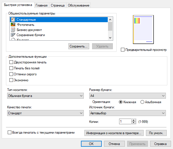 - Настройки в драйверах печати и сканирования