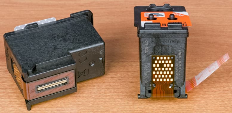 Печатающие головки, как и ранее, очень похожи на картриджи для других моделей серии Pixma. И точно так же пользователь устанавливает эти головки перед началом эксплуатации, но никаких пользовательских процедур для их замены в случае неисправности не предусмотрено, наоборот: извлекать головки самостоятельно не рекомендуется.