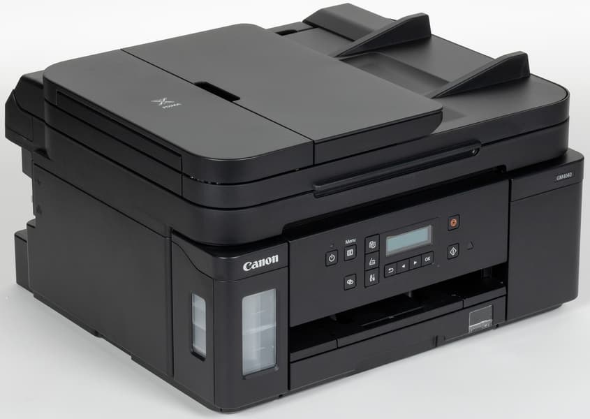 Сканер расположен стандартно для подобных МФУ — продольно в верхней части. В отличие от уже упоминавшейся модели Pixma G6040, имеется автоподатчик, вместимость лотка которого в спецификации обозначена как 35 листов с плотностью 75 г/м², то есть стандартной офисной бумаги 80 г/м² поместится немного меньше. В лотке имеется откидная крышка и боковые направляющие для выравнивания стопки оригиналов.