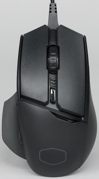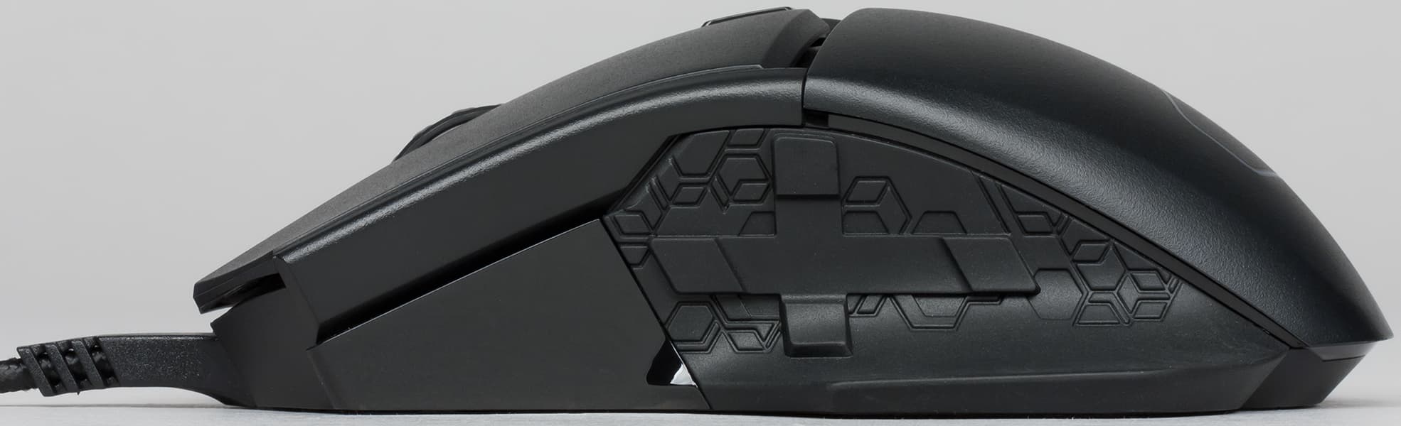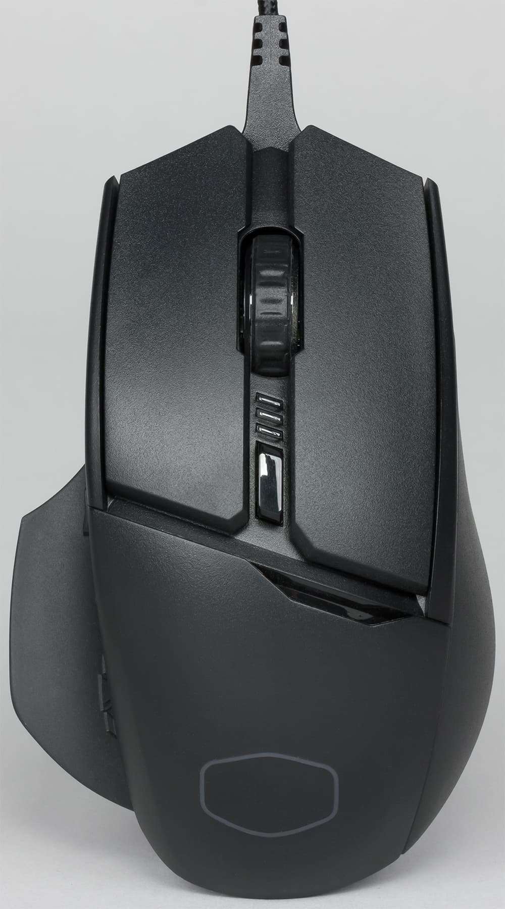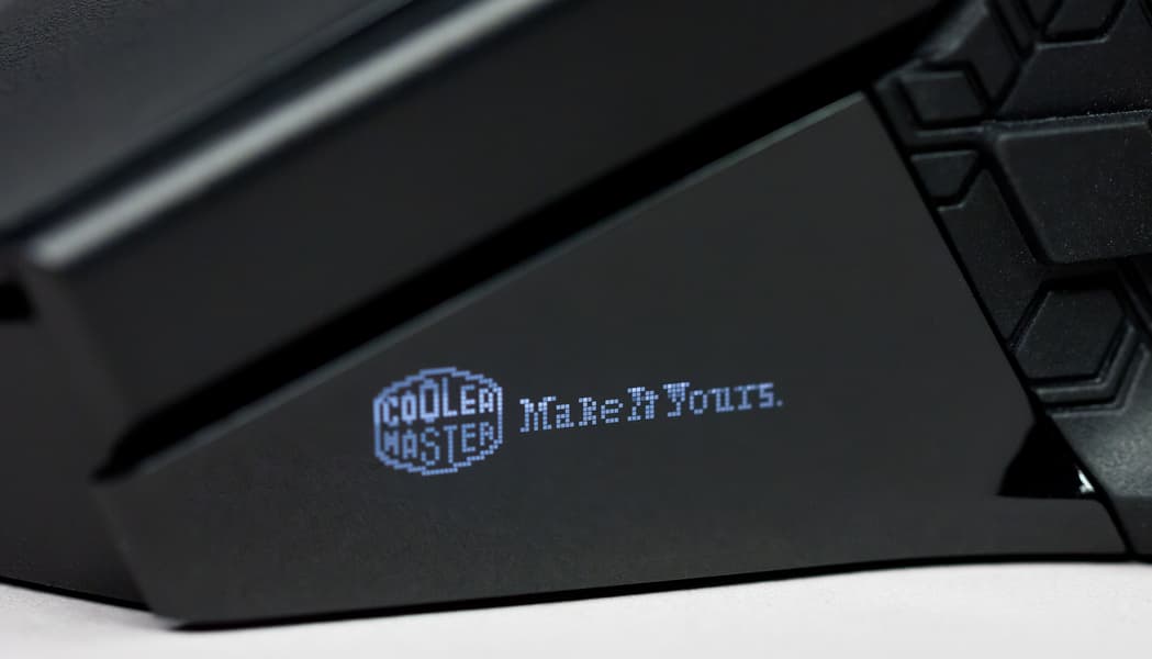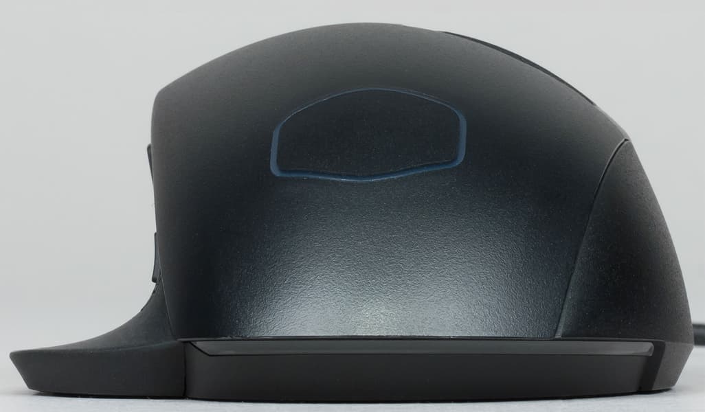 На следующей фотографии можно видеть логотип Cooler Master, который находится на боку мышки, рядом с резиновой кнопочной вставкой, ближе к кабелю.