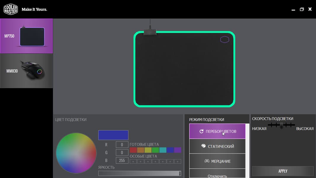 Управление обоими гаджетами (как и любой регулируемой периферией производства Cooler Master) производится в фирменном программном обеспечении. Это приложение для ПК называется Cooler Master Portal. Нужно отметить редкое и полезное свойство программы: после установки она не добавляет свои модули в автозагрузку, не мусорит систему никакими сервисами, агентами и прочими надоедливыми обновлялками. Редкая скромность для софта подобного рода.